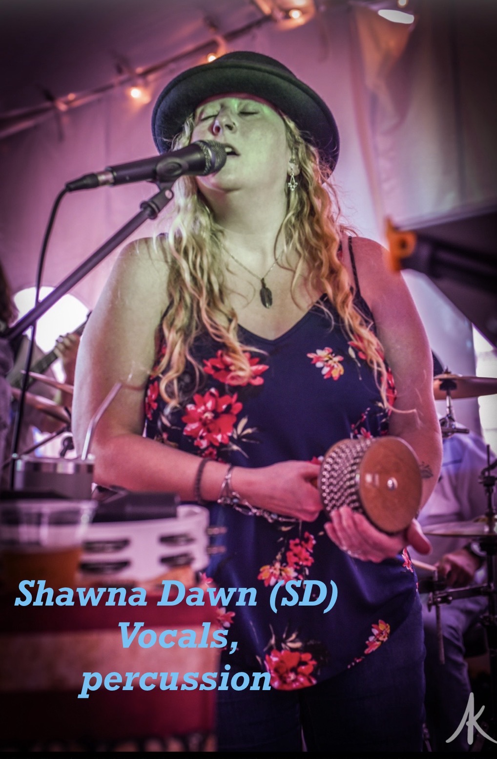 One of the best kept secrets on the local music scene, our front-woman SD, Shawna Dawn!    Shawna brings a powerful voice that comes directly from her rock roots. Her journey to the stage was unexpected  (was it though??).  Many of you may know her from her years with Grit-N-Whiskey.  After the unexpected passing of her Mom and co-founder of G-N-W, Terry Lee Pechette, Shawna came forward with the difficult task of succeeding Terry Lee.  And boy did she!! Mostly to her own surprise, she has developed into a powerful lead vocalist, sings ridiculously tight harmonies, and plays numerous percussion instruments.  Performing in the Art~n~Shawna Duo and Trio, she really helps to define our sound.  And now, going back to her rock roots in the Art~n~Shawna Band, you’re really going see to how mighty she is!  And, As one half of the Art~n~Shawna duo, she and Art are also nominees for Favorite Duo in the 2026 Listen Up Awards.